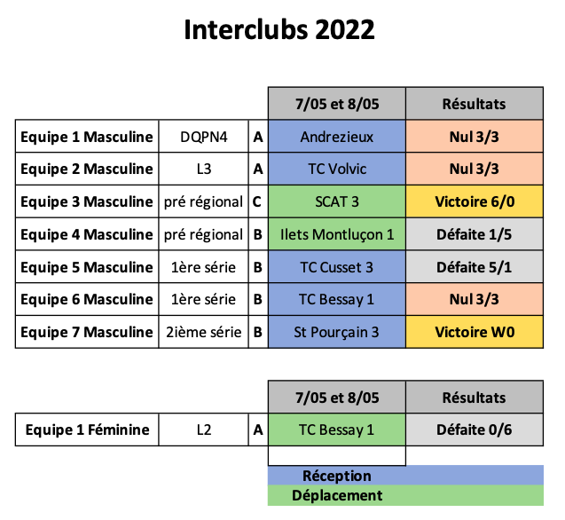 Résultats de la 2ème journée des interclubs 2022
